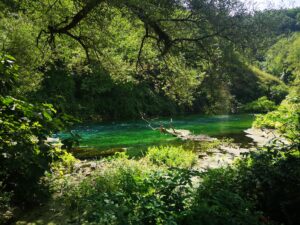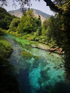 Le « Blue Eye » est une source célèbre qui sort de sous la montagne. Ça fait un rond bleu foncé dans la rivière d’où son nom. C’est magnifique mais aussi l’endroit le plus touristique qu’on ait visité en Albanie. On arrive quand même à faire de jolies photos.