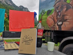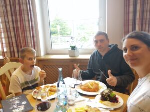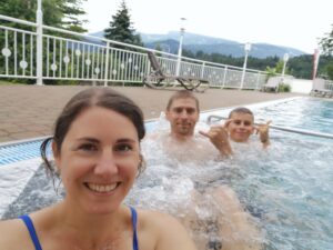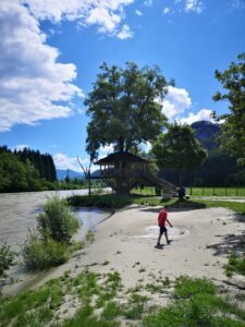 Cette fois un s’arrête dans un camping à Kramsach dans le Tyrol. Place de jeux monstrueuse, piscine (un peu froide !) que pour nous et le soir, schnitzel au restaurant.