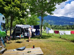 On a bien roulé, beaucoup d’autoroute et surtout on a vu personne à la douane autrichienne ! On se retrouve à Düns sur une place réservée aux camping-cars, le camping sauvage est interdit en Autriche.