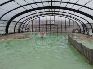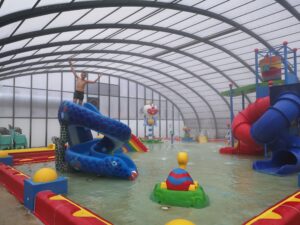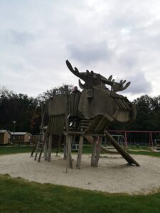 Pour finir on a eu envie ou besoin de repos après tous ces kilomètres… On s’est donc trouvé un camping où on est restés quelques jours. C’était un immense camping avec de belles et grandes places de jeux ainsi qu’une piscine avec toboggans mais surtout une partie couverte parce qu’il ne fait pas chaud. Le paradis pour Samuel ! Un endroit typiquement où on ne viendrait pas en plein été mais là c’est génial il n’y a personne ! On a bien profité.