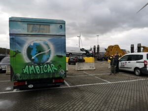 Pour résumer : jeudi nous avons amené notre Ambicar au port de Zeebrugge. On s’attendait à y passer du temps mais le contrôle a été rapide. Ça fait quand même bizarre de laisser la clé et de la voir partir avec quelqu’un d’autre au volant ! On a hâte de le retrouver de l’autre côté de l’océan. On était déjà « sans domicile fixe » maintenant on est « sans domicile » tout court !