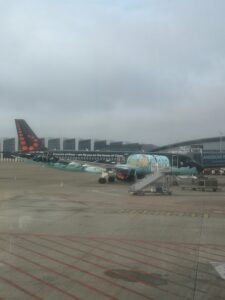 En repartant nous sommes passés à côté de Bruxelles, sans aller au centre puisqu’on y retourne le week-end prochain. On s’est arrêté dans un grand supermarché pour acheter des valises pour l’avion.