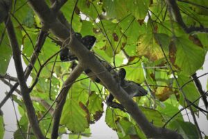 On a eu la chance de pouvoir observer plein d’animaux. Déjà, à notre arrivée sur le parking, on a vu une dizaine de coatis. Puis des oiseaux, des singes le long du parcours, et moins mignon une grosse tarentule et deux grenouilles translucides.