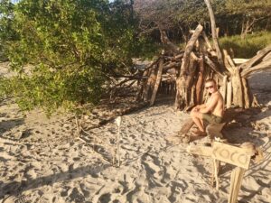 On a donc passé 3 beaux jours sur cette plage. Farniente, construction d’une magnifique cabane, promenades, hamac « pura vida » comme ils disent ici.