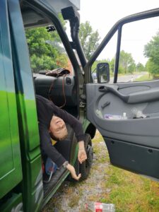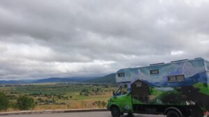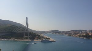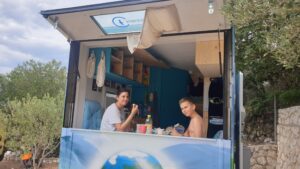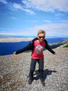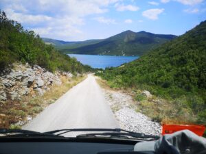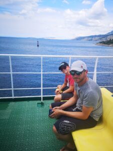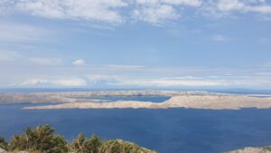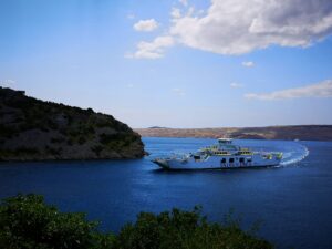Hier nous avons quitté cette région dans les montagnes et retrouvé la mer. Nous avons pris un ferry pour rejoindre l’île de Pag. Grande file de voitures pour pouvoir y monter et c’est l’heure de manger. Du coup je suis allée à l’arrière faire les sandwichs !