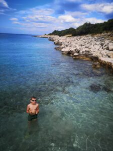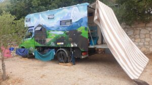 Sur l’île nous avons cherché un spot sauvage mais l’accès était trop difficile. Nous sommes donc au camping « Kanic » vers une jolie crique turquoise.