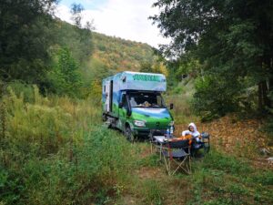 Nous sommes donc asset tôt à la frontière mais il y a quand même déjà du monde. A part un peu d’attente on passe sans aucuns problèmes et sans montrer nos certificats. Et hop, la Serbie !
