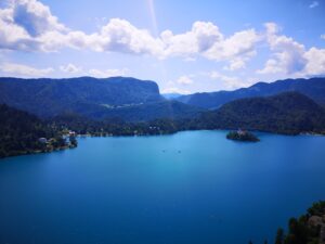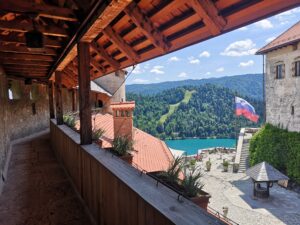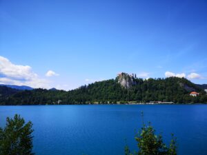 On va jusqu’à Bled (pas de jeux de mots on en a trop fait !). On visite le château qui surplombe un lac turquoise, c’est vraiment magnifique. On fait de superbes photos et vidéos.