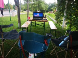 On profite de la douce soirée pour regarder un film à l’extérieur (en combattant quelques moustiques !)