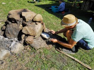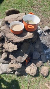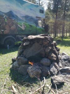 On est censé se reposer mais David et Samuel se lancent dans la construction d’un four à pain ! On y reste pour un deuxième jour et une deuxième nuit. On cuit notre pain, délicieux ! Samuel n’était pas en forme, mal de ventre et de tête. C’était bien de ne pas être sur la route, il a pu se reposer.