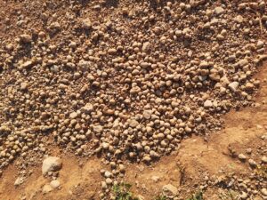 On s’éloigne de la ville où la chaleur est étouffante pour se rendre dans les montagnes. Les paysages sont vraiment magnifiques et on trouve un lac pour s’arrêter. Comme il est asséché par endroits il y a plein de coquilles d’escargots (d’eau ?!) au sol.
