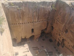Nous sommes allés visiter la ville souterraine de Kaymakli. Le tout creusé dans la roche sur plusieurs étages. Par endroit les tunnels ne faisaient pas plus d’un mètre trente de haut ! Un véritable labyrinthe, heureusement que le parcours était fléché sinon on y serait encore !!!