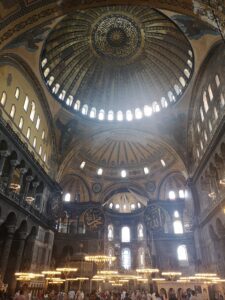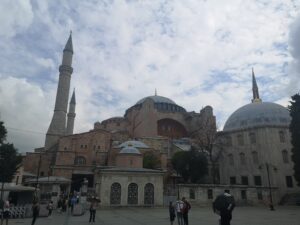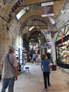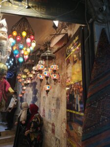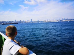 Aujourd’hui nous sommes allés nous balader dans la ville. Il faut être prudent même quand le feu piéton est vert ! Visite de la Mosquée bleue et Sainte-Sophie (avec port du voile !) et du grand bazar. Une journée suffira, je crois qu’on est un peu agoraphobes ! Ce qui nous a marqué : le réapprovisionnement des boutiques. Des hommes tirent des chariots remplis de sacs ou cartons. Certains ont la chance d’avoir un moteur mais la plupart le font à pied et c’est pas plat partout !